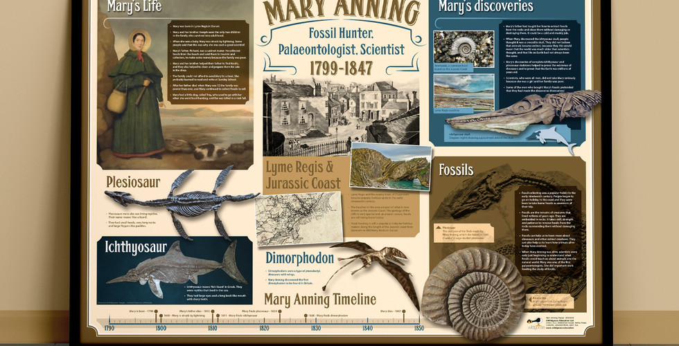 The initial project entailed crafting a poster honouring Mary Anning, an eminent Fossil Hunter, Palaeontologist, and Scientist prominent in the early 1800s. I collaborated closely, utilising provided content and conceptual directives for imagery and illustrations. The result was an illuminating poster that lauds the accomplishments of this pioneering figure. Anning's groundbreaking contributions, pivotal in substantiating the existence of dinosaurs and affirming the world's age as millions of years, were duly celebrated.